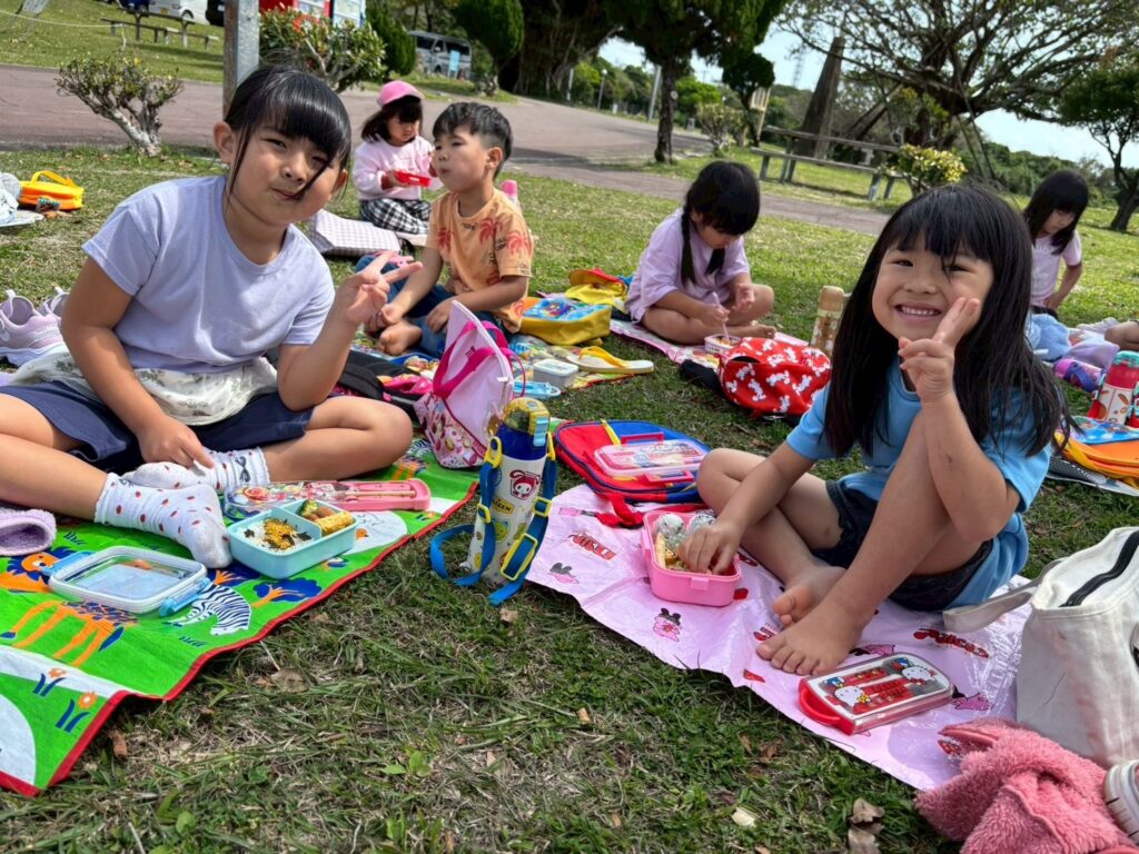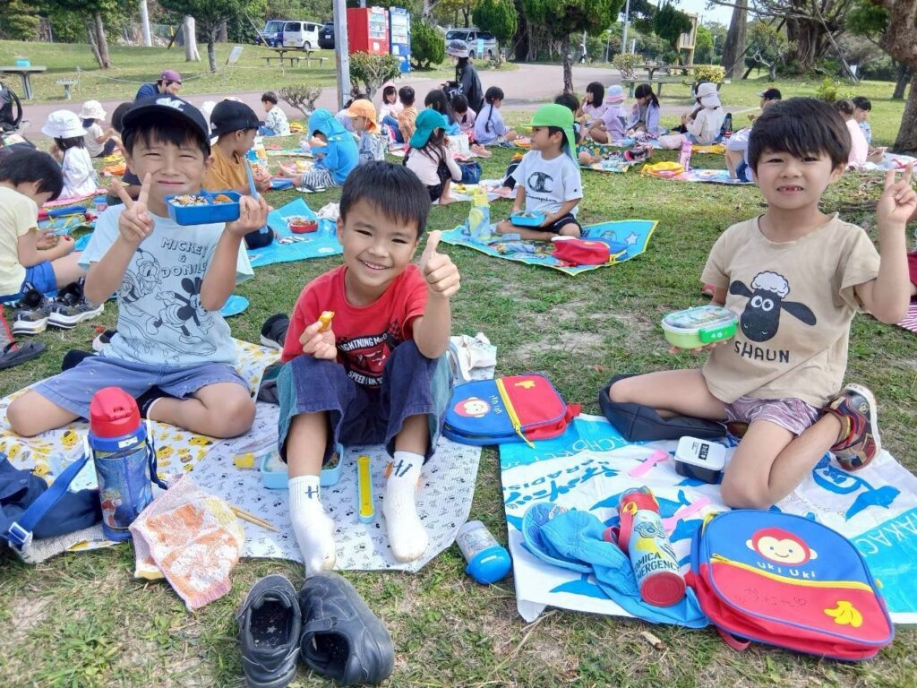 「見て見て〜!」と自慢のお弁当を見せ合いながら、みんなペロリと完食でした